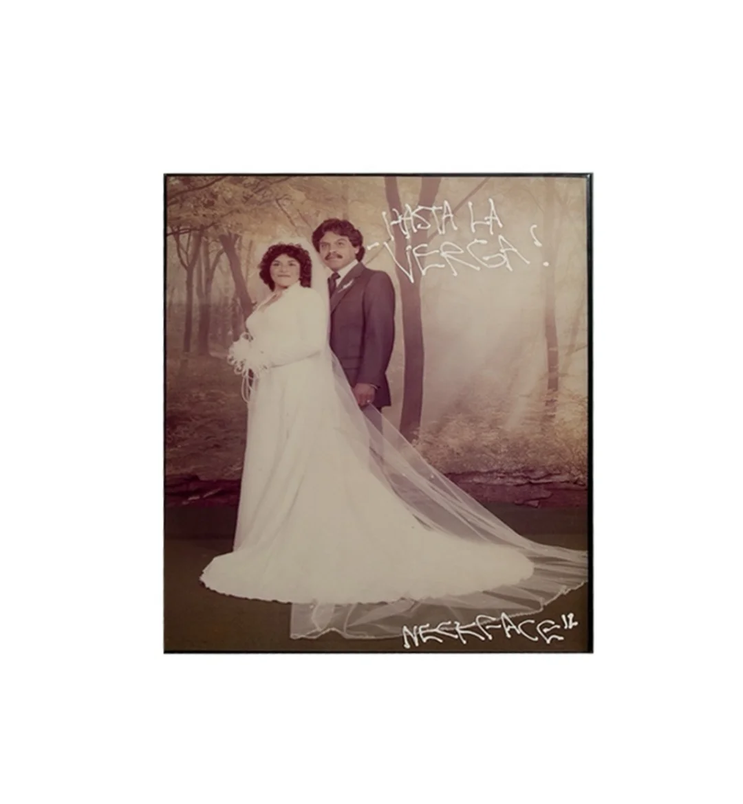 Añade un toque de actitud y humor negro a tu espacio con este Cuadro rayado personalmente por Neckface. Esta pieza decorativa captura el estilo crudo y transgresor que ha hecho de Neckface una figura legendaria en las escenas del arte urbano y el skateboarding mundial.